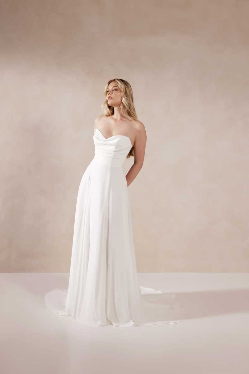 To feel prepared, save our step-by-step wedding dress fitting checklist. We’ll guide you on what to bring and how each appointment runs, so every try-on feels calm and intentional.