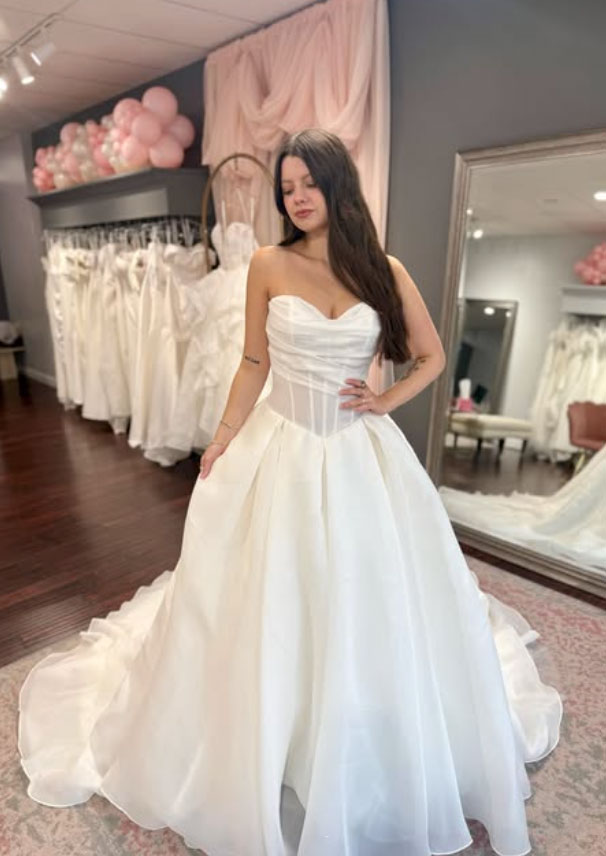 Most made-to-order gowns need months to arrive, plus time for alterations. We’ll walk you through options and rush possibilities at your appointment.